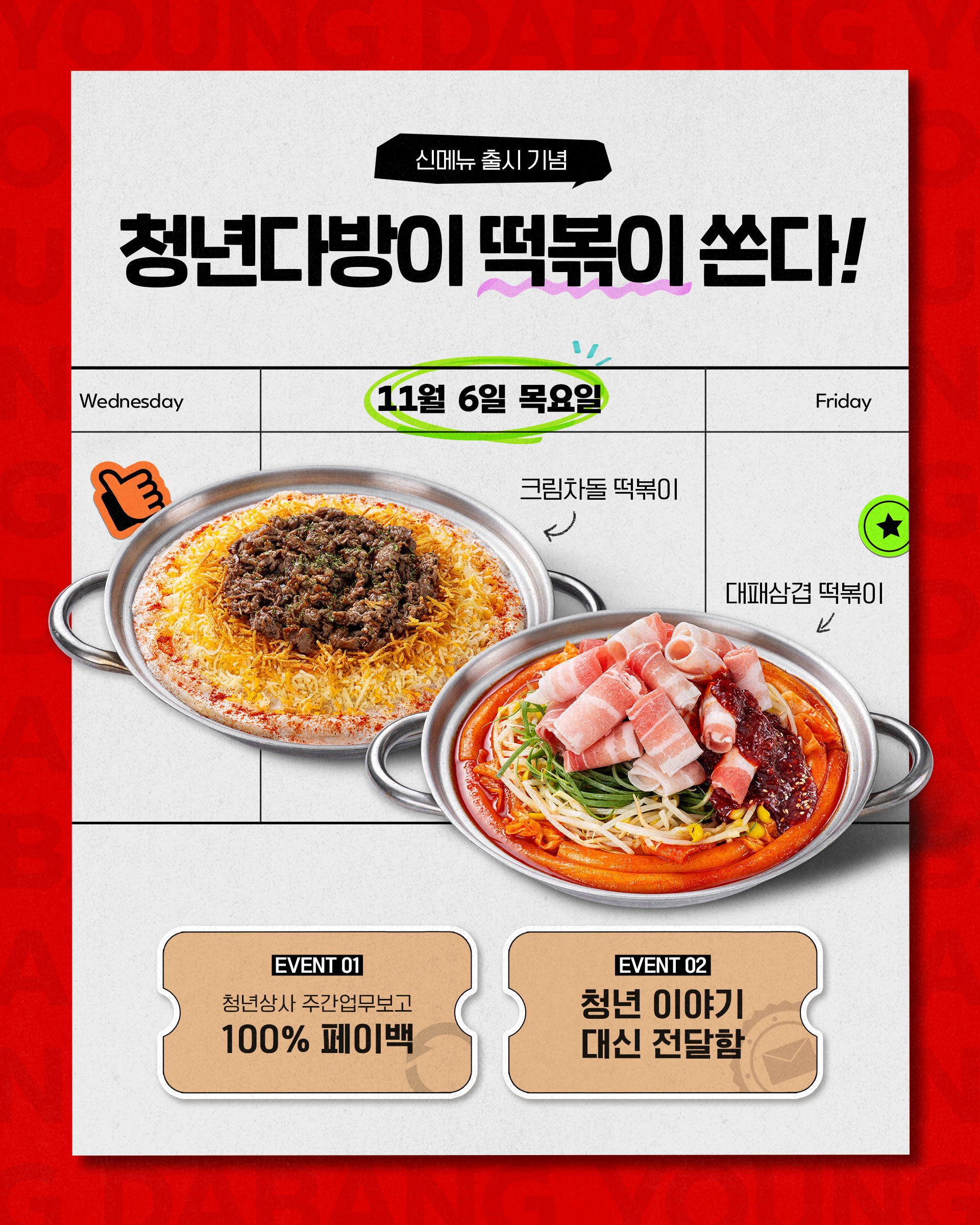 크림차돌 떡볶이&대패삼겹 떡볶이 출시 기념으로